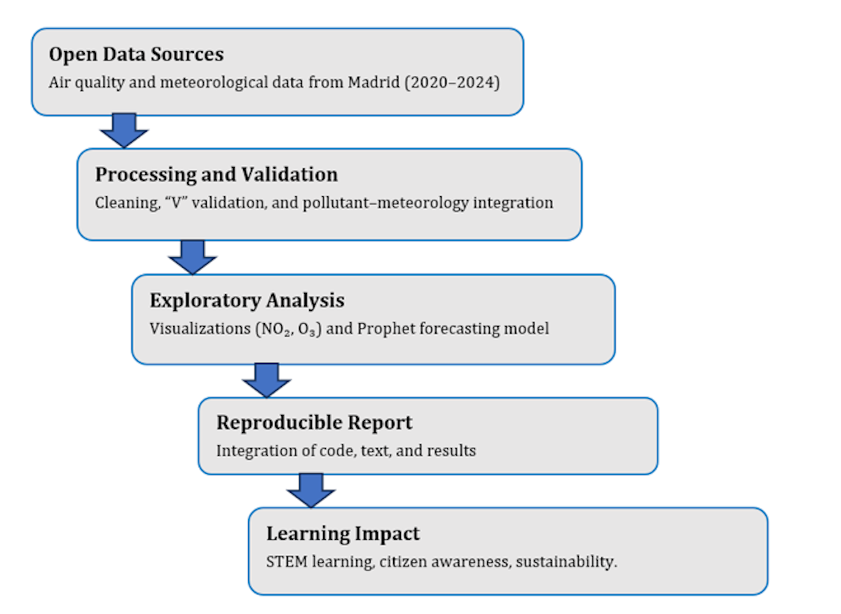 Cáceres-Tello, J., Galán-Hernández, J. J., Morales Cevallo, M. B., & López-Meneses, E. (2025). Citizen Science and STEM Education with R: AI–IoT Forecasting and Reproducible Learning from Open Urban Air Quality >Data. Applied Sciences, 15(22), 12183. https://doi.org/10.3390/app152212183