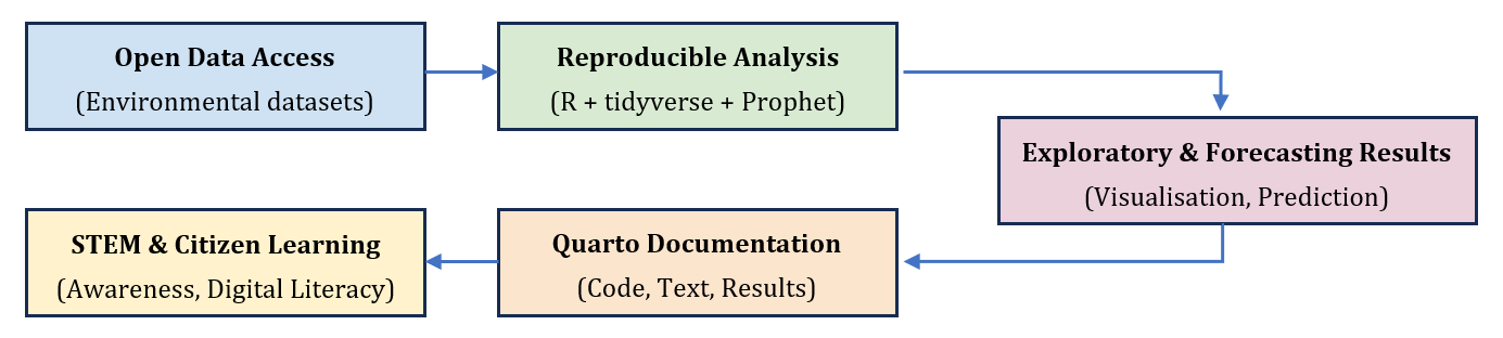 This notebook complements the article Citizen Science and STEM Education with R: AI–IoT Forecasting and Reproducible Learning from Open Urban Air Quality Data