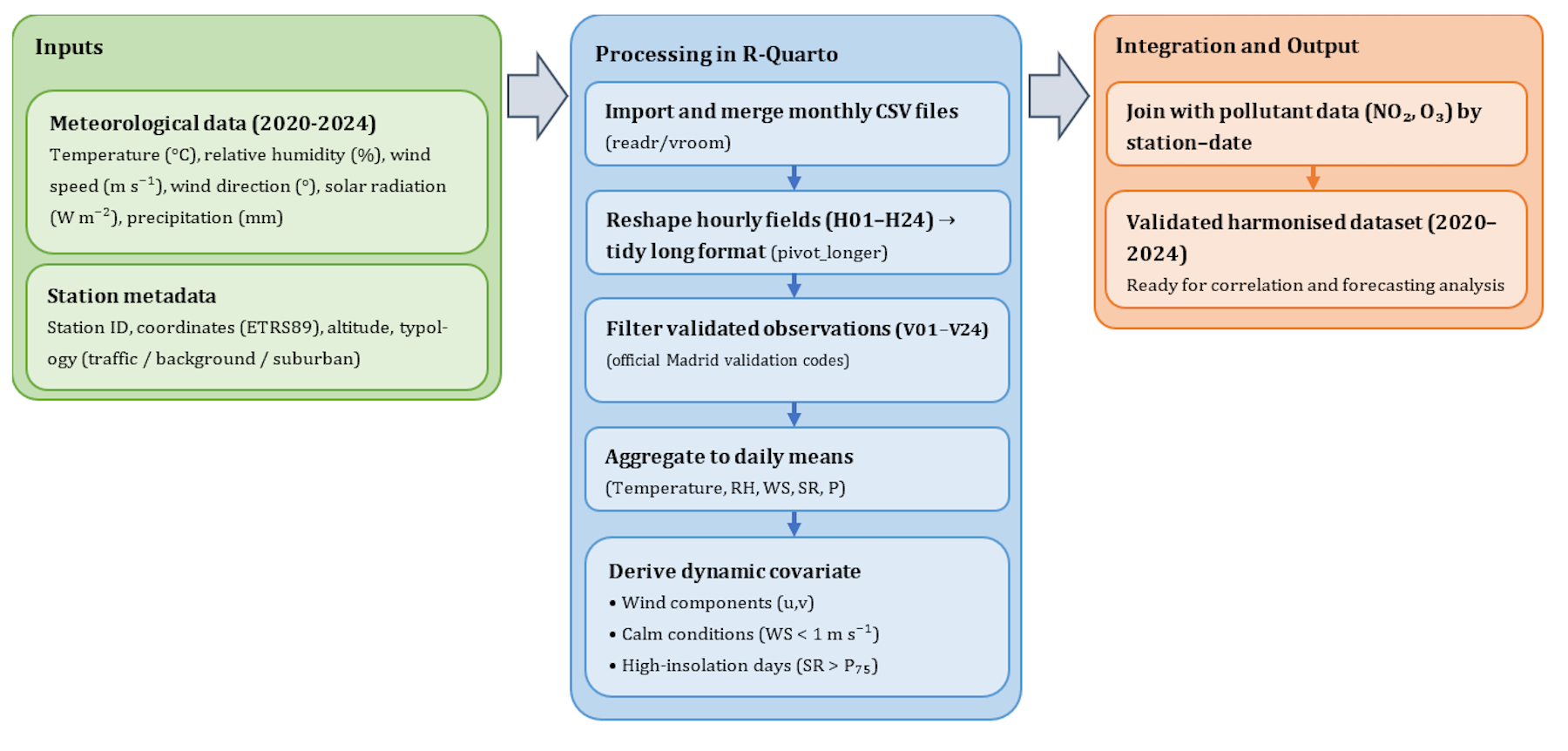 Data from both sources were processed in R through three main stages: