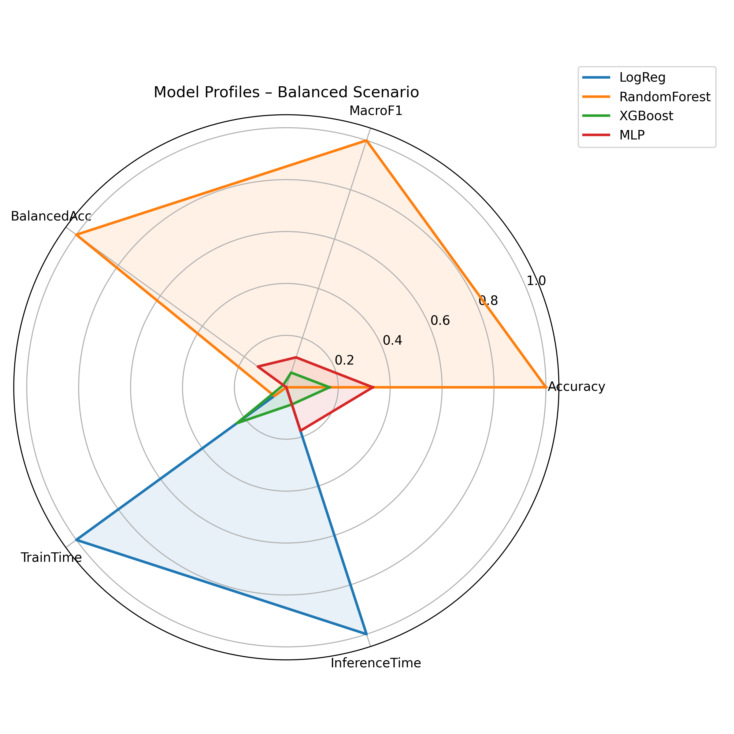 Fig. 2. Radar comparison of models under the balanced scenario.